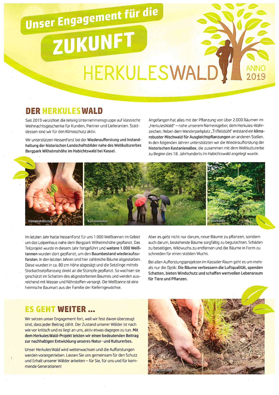 Telsnig ist der Lieferant für unser SegwayNavimow Rasenroboter. Statt Werbe- u. Weihnachtsgeschenke zu verteilen ist Telsnig beim Klimaschutz aktiv. Telsnig unterstützt den HessenForst bei der Wiederaufforstung und Instandhaltung der historischen Landschaftsbilder nahe des Weltkulturerbes Bergpark Wilhelmshöhe im Habichtswald bei Kassel.